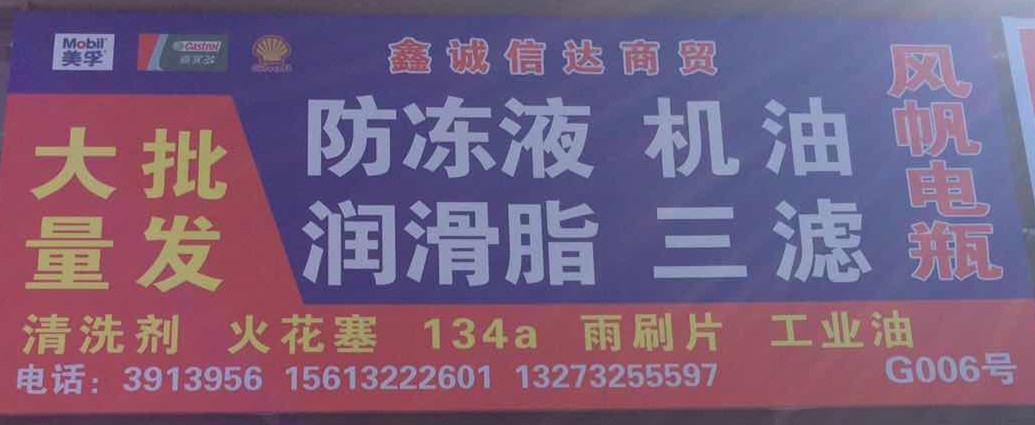 主營(yíng)品牌:機油、三濾電瓶、防凍液、工業(yè)油、抗磨劑、氟134a
