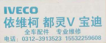 主營(yíng)品牌:專(zhuān)業(yè)維修南京依維柯、都靈V、寶典配件維修 地址:保定市南市區建國路416號裕豐汽配城25號樓8523號 聯(lián)系人:商昭 電話(huà):0312-3913523 手機:15532259608 |